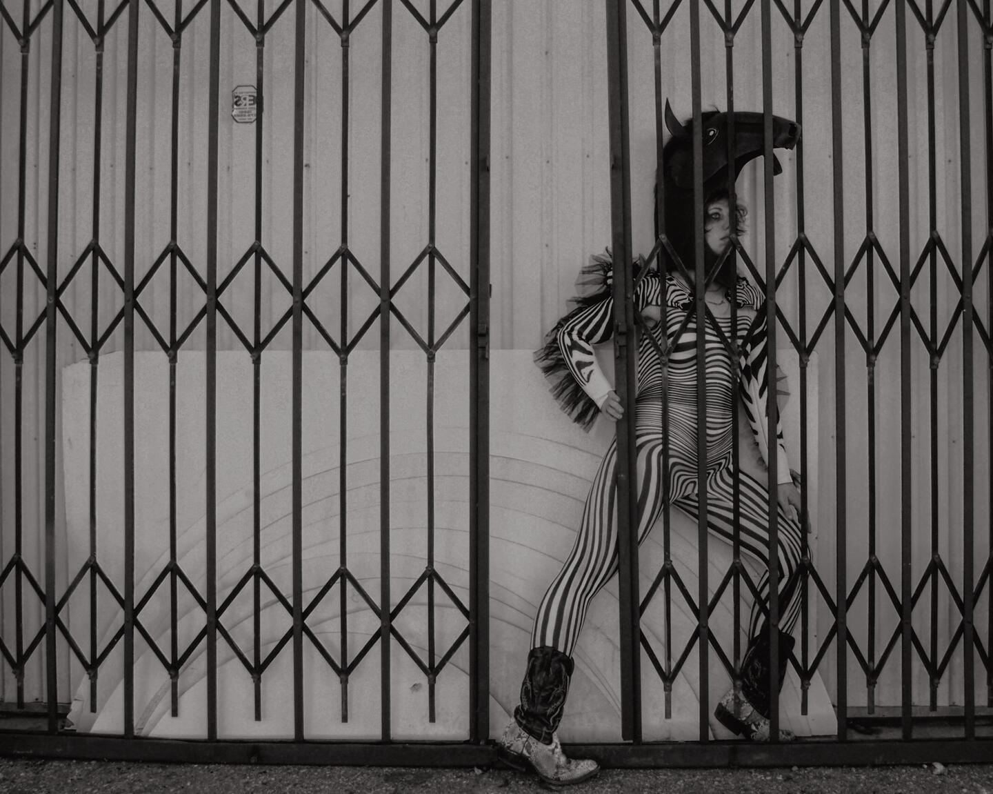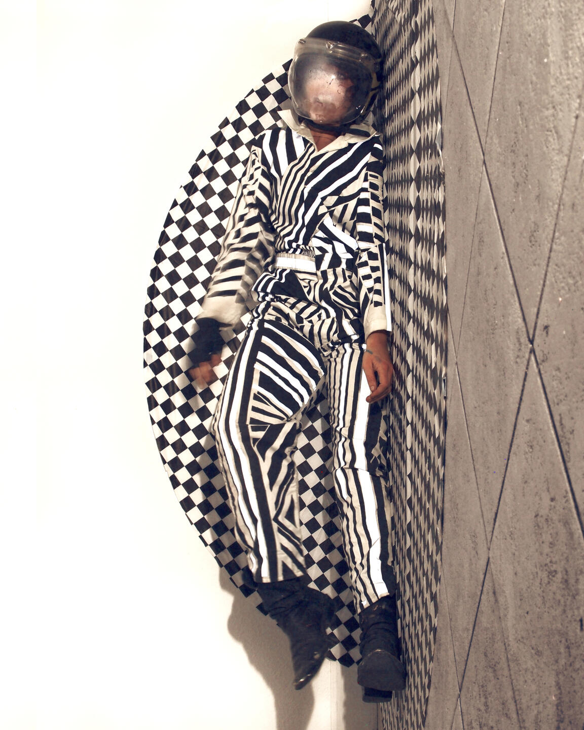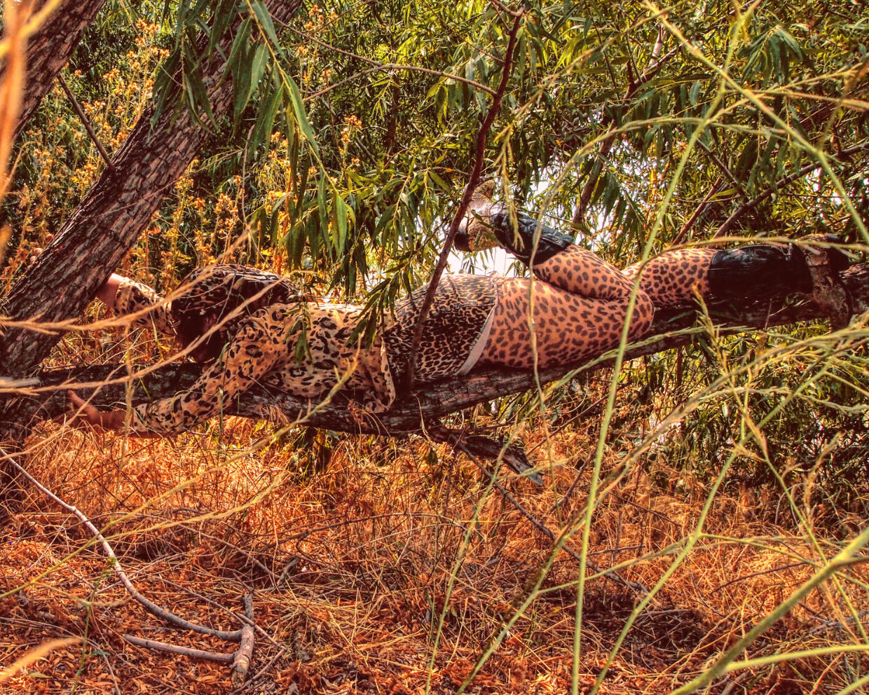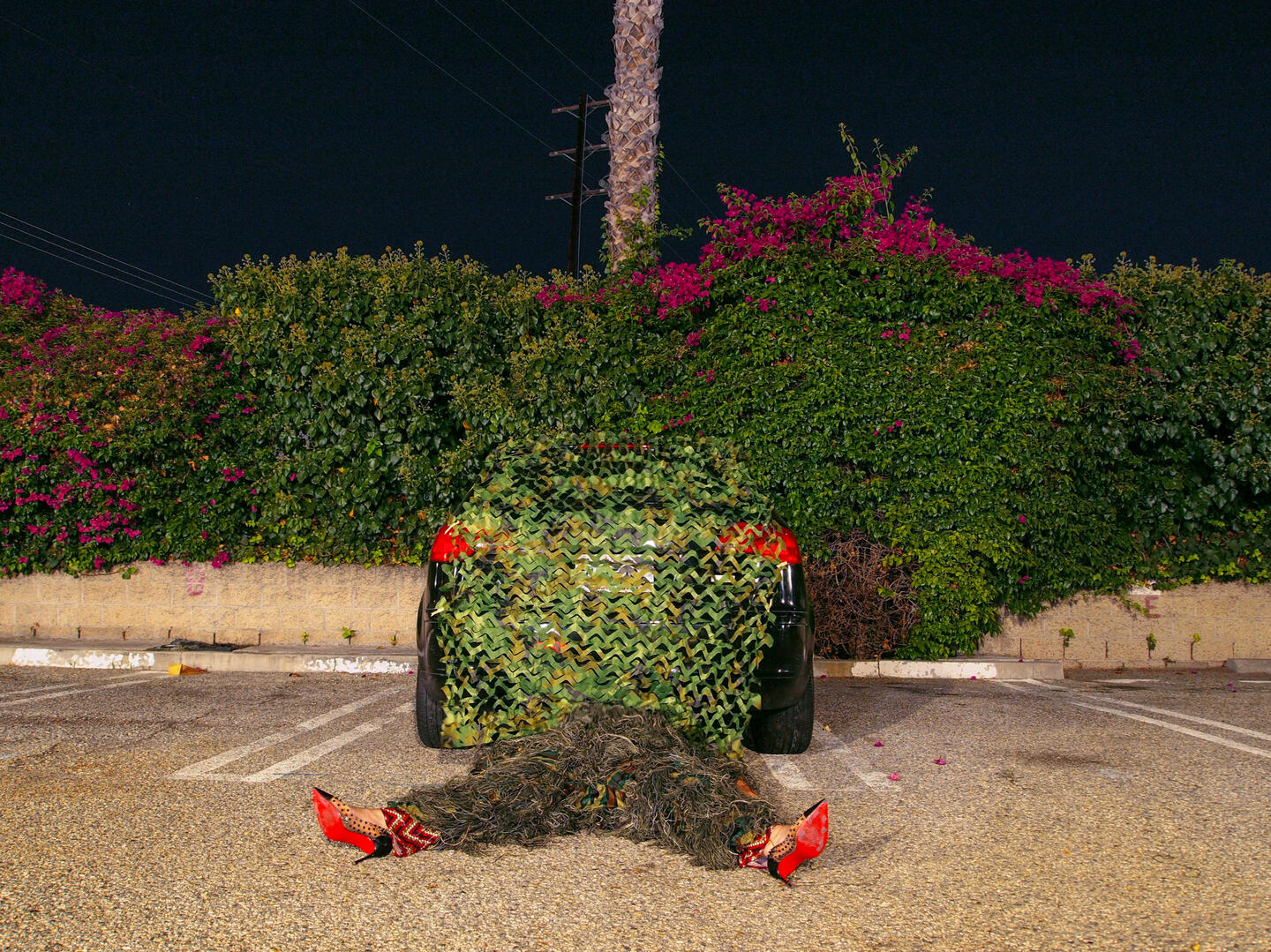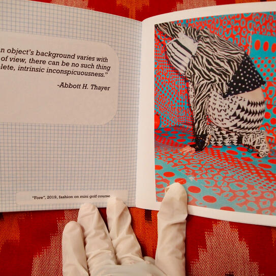 Camouflage shields, regardless of a camofleur's primary intention. Whether used by a stalking tiger, a grazing zebra, or a dazzle-patterned battleship: the disguise protects against recognition. It is only used to avoid.The theme of concealment implies an invisible, stationary subject, but there is captured movement in these images. Staying hidden without further action is engaging in a silent, one-sided siege. "Hiding From You" is taking accountability for passivity- ending the siege.This is an artist at war with herself, and she wants you to witness.