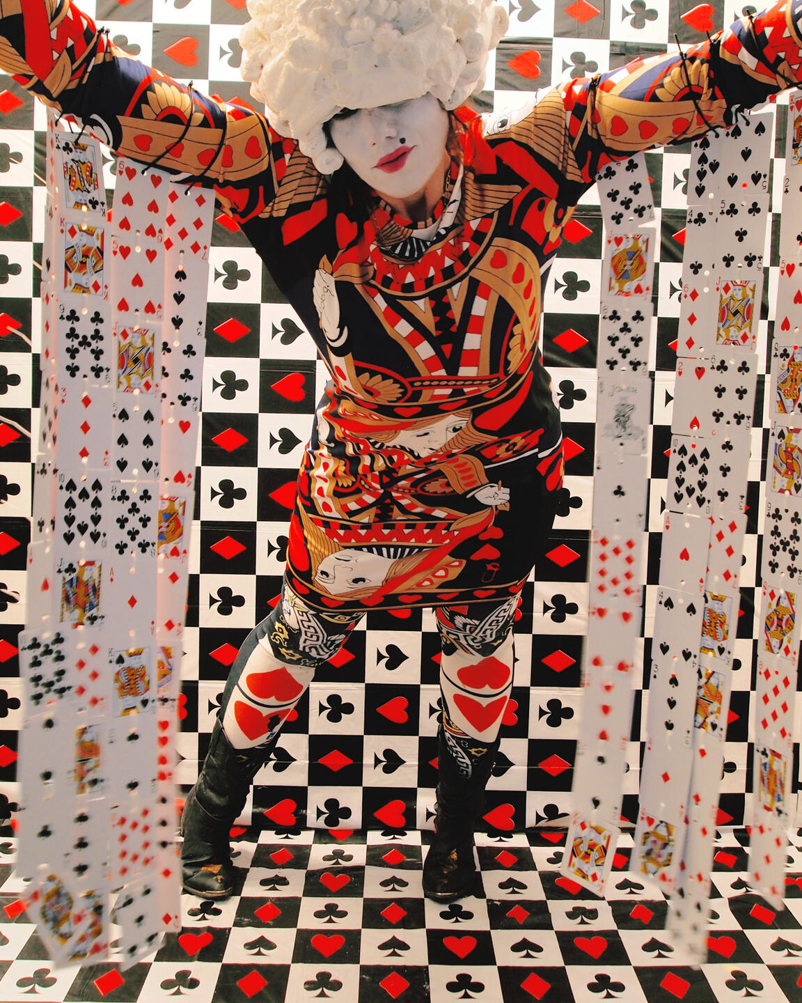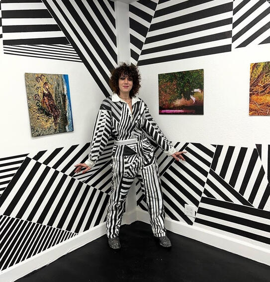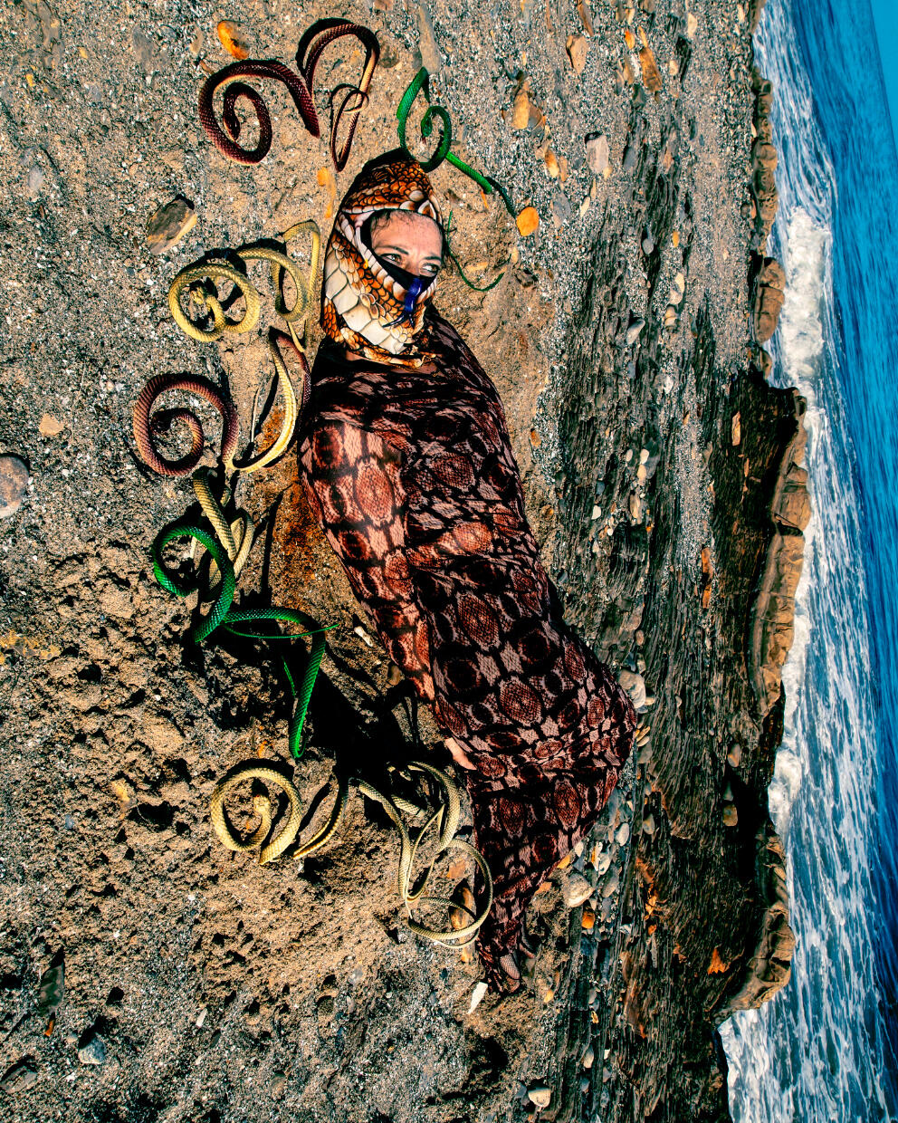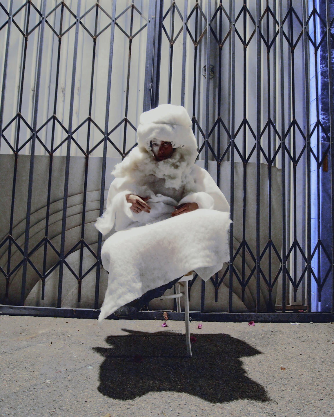 Camouflage shields, regardless of a camofleur's primary intention. Whether used by a stalking tiger, a grazing zebra, or a dazzle-patterned battleship: the disguise protects against recognition. It is only used to avoid.The theme of concealment implies an invisible, stationary subject, but there is captured movement in these images. Staying hidden without further action is engaging in a silent, one-sided siege. "Hiding From You" is taking accountability for passivity- ending the siege.This is an artist at war with herself, and she wants you to witness.