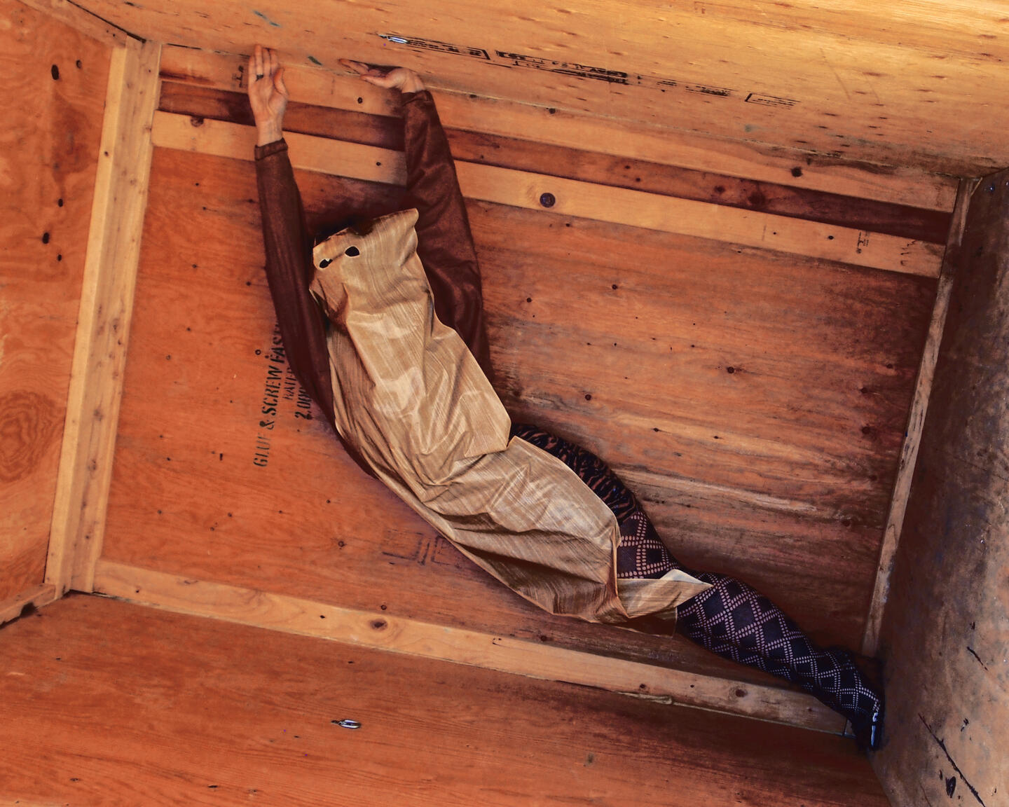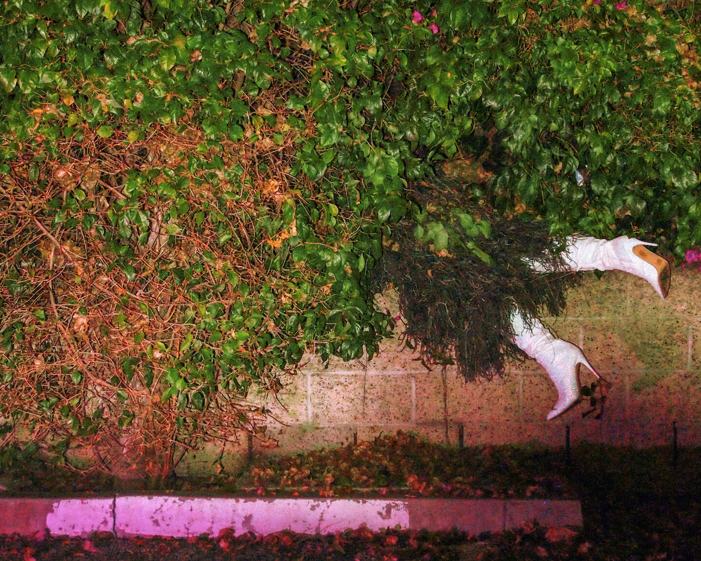 "Hiding From You" is a confession. It is a revelation. It is an invitation.This series utilizes restriction as a means to freedom. Limiting herself to only pre-existing environments and possessions, Lesya Godfrey camouflages herself into her surroundings. Using only the 12 second timer on her camera she runs blindly back and forth to capture raw self-portraits, exposing herself. A one person game of hide and seek.